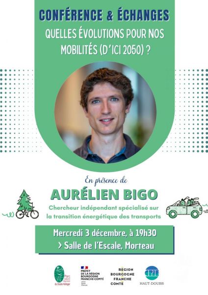 Mercredi 3 décembre de 19h30 à 21h30, salle de l’Escale à Morteau – conférence et échanges en présence d’Aurélien Bigo « Quelles évolutions pour nos mobilités d’ici 2050 ? »