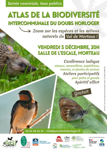 Points abordés : présentation ludique de l’Atlas, zoom sur les espèces et les milieux naturels du Val de Morteau, ateliers participatifs sur la biodiversité pour petits et grands…