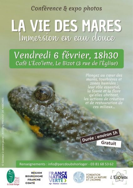 Dans le cadre de la Journée Mondiale des Zones Humides, le Parc naturel régional du Doubs Horloger organise une conférence dédiée à la découverte des mares et des tourbières (affiche ci-joint).